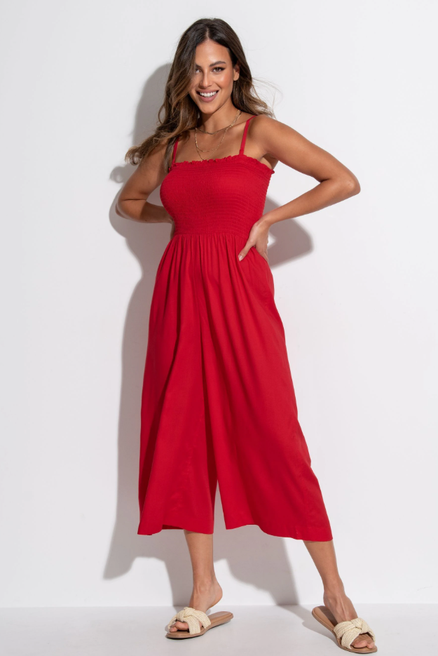 Experience the perfect blend of style, versatility, and comfort with the Strapless Shirred Bodice Crop Leg Beach Jumpsuit. Designed with a comfortable shirred bodice and flattering cropped legs, it's the perfect choice for all your summer plans. Embrace the sun and freedom with the strapless design or add and adjust the straps for extra security and style. It's your choice, every time! From a casual day at the beach to a sunset beachfront dinner, this jumpsuit effortlessly transitions with your plans.