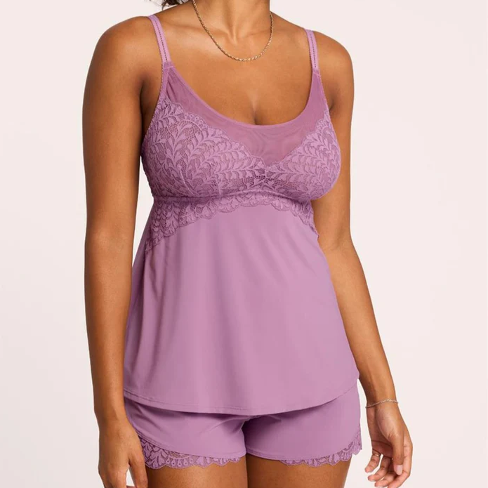 The lounge set you didn’t know you needed: airy microfiber, non-scratchy lace, and the bust support that everyone raves about - now in a short-and-top set. You’ll be thriving in this new look. Features: - Supportive mesh with side inner sling - Airy microfiber and feminine lace - Soft, adjustable picot straps - Underbust elastic for extra support - Short and top included - Silver hardware - Ethically made Washing Instructions: - Hand wash, cold water OR machine wash closed in mesh bag, gentle cycle - Hang to dry Style #9590