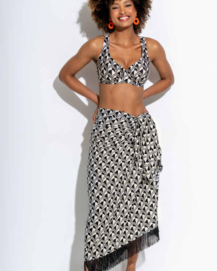 Treat yourself to the ultimate beach accessory with the Fringe Trim Crinkle Woven Multiway Sarong. Crafted from woven, crinkle fabric that not only adds visual appeal but also ensures a comfortable, breathable fit for those warm summer days. Enjoy the freedom of wearing this multiway sarong how you like, from a classic skirt style to a breezy bandeau beach dress, this sarong with bohemian fringe detailing adapts to your mood, style and the occasion.