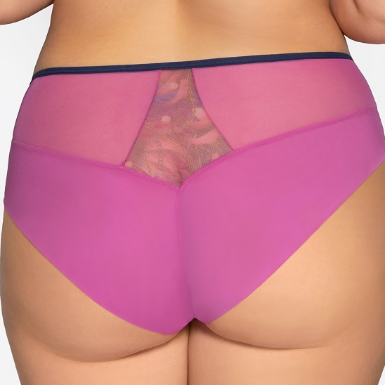 The matching panty to the Cassie Balcony bra, is a stylish full brief with medium waist coverage designed specifically for women. Featuring stable tulle and embroidery in the front, a decorative stripe and circle in the middle, elastic tulle on the sides, and finished legs with a narrow elastic tape, these briefs offer a secure and comfortable fit.
