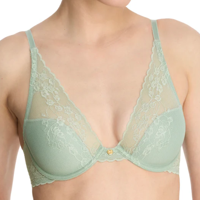 Cherry Blossom inspired lace adorns this contour underwire plunge bra.