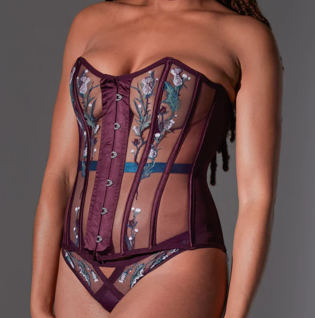 Center keyhole, cut-out and sleek mesh panels combine perfectly on this set. Features a witchy, vintage T&S embroidery.