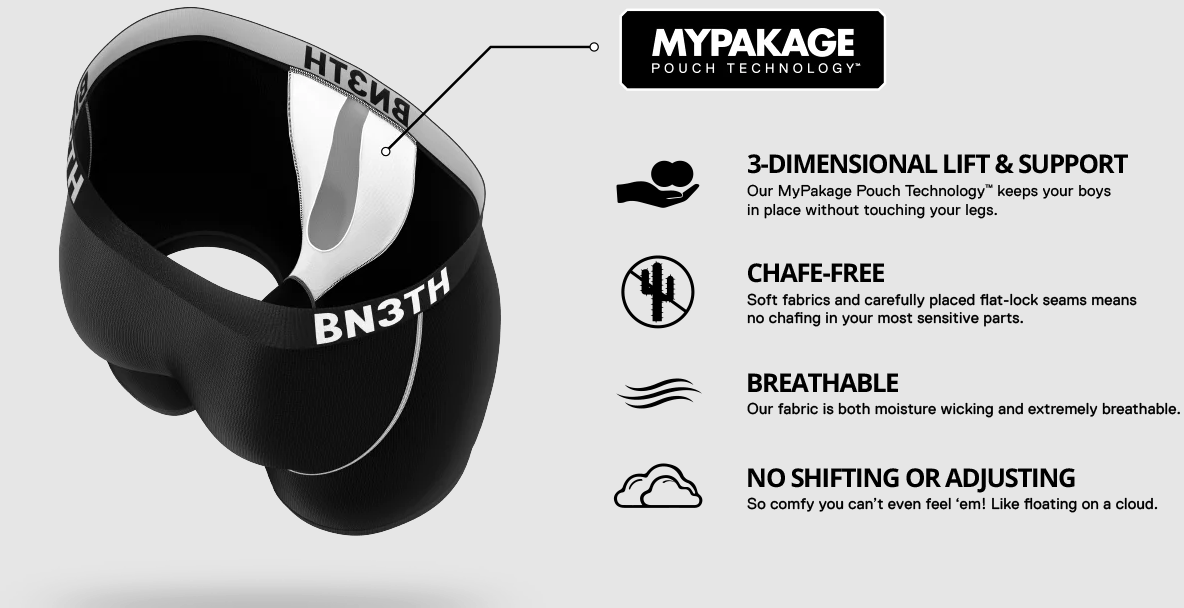 These luxury Boxer Briefs feature an ultra-soft, breathable, lightweight Tencel™ Modal that is sustainably sourced, guaranteed to stay smooth and keep you comfortably supported at all times. BN3TH's Pouch Technology™ lifts & separates your boys, eliminating the need to shift or adjust.