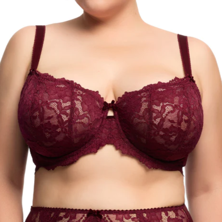 The Cora Full Figure Bra offers elegance and grace in fine lingerie dressing. The Cora underwire bra is made from a heavy floral lace and offers full support with beautiful styling.