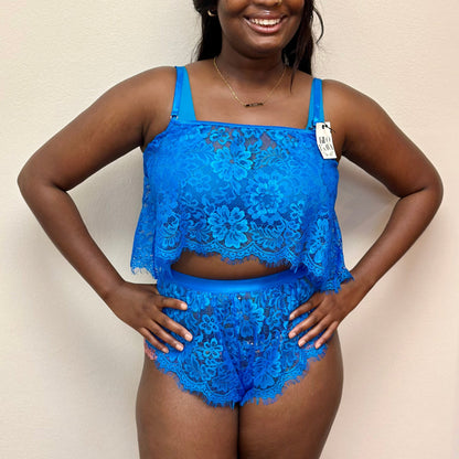 Dive into a sea of style with our Hawaiian Blue Crop Cami & Panty Set! This playful duo features eye-catching blue fabric adorned with gorgeous lace details that'll make you feel fabulous whether you're lounging at home or layering under your favorite outfit. Mix and match or wear together – this versatile set is your new go-to for comfort with a flirty twist!
