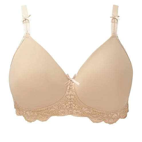 Georgia is the perfect way to add a touch of luxury to everyday basics. This delightful t-shirt bra is trimmed with tiny ribbons and stunning lace on the cradle and wings. With lightly padded, moulded cups, it comes with pure cotton lining/pockets as standard.