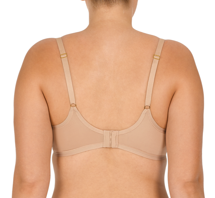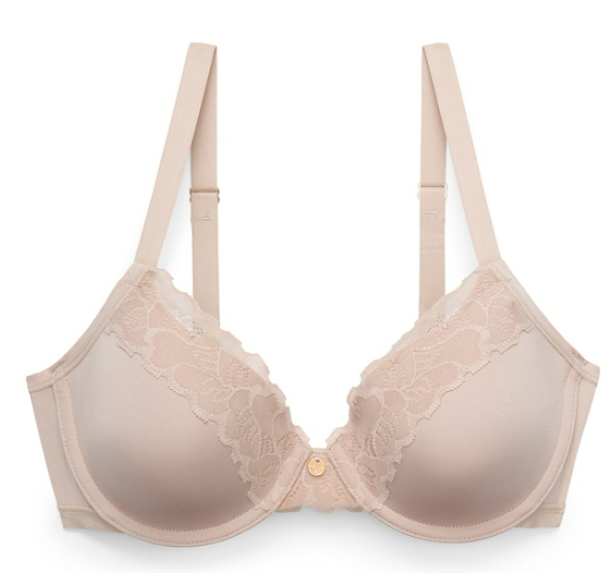 This soft t-shirt bra is great for everyday wear. It has a lace trim that won't show through clothes.