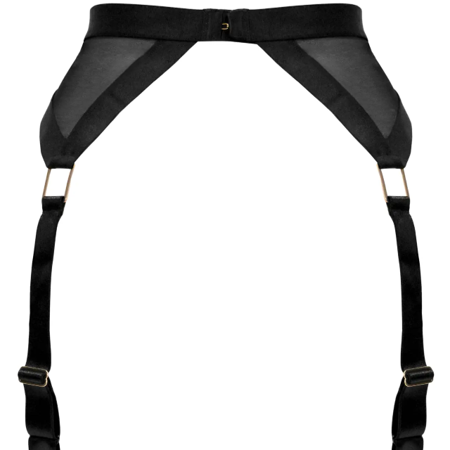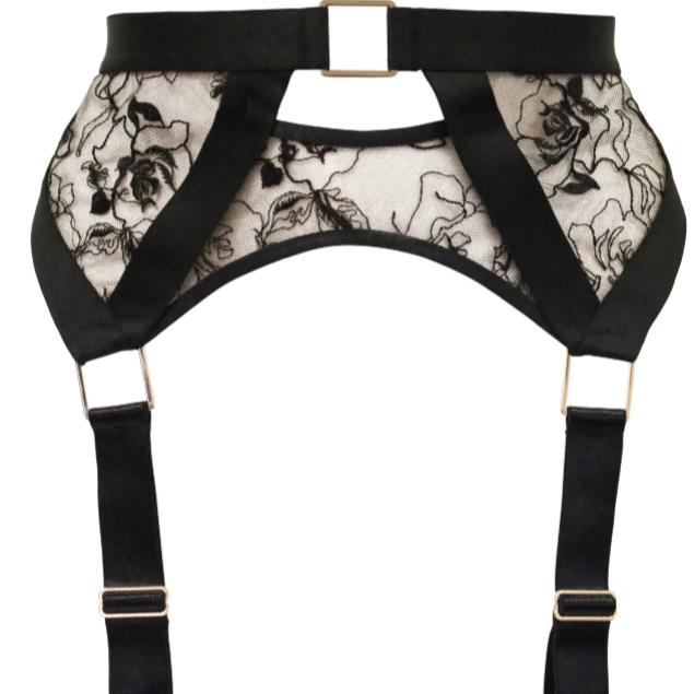 Let's get intimate. Show those legs some love in this sexy suspender. The India Embroidery Suspender is crafted in beautiful decorative mesh panels and finished with a wide satin strapping cage design. Let the suspender do all the work with adjustable suspender straps and luxe gold hardware finishing. Match with our India Embroidery collection to complete this beautiful feminine look.