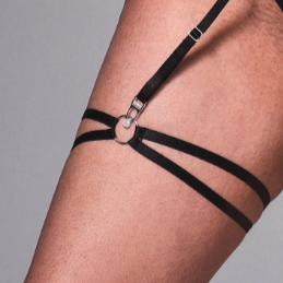 Set of 2 adjustable thigh garters with nickel-free statement O-rings. Doubles as a choker.