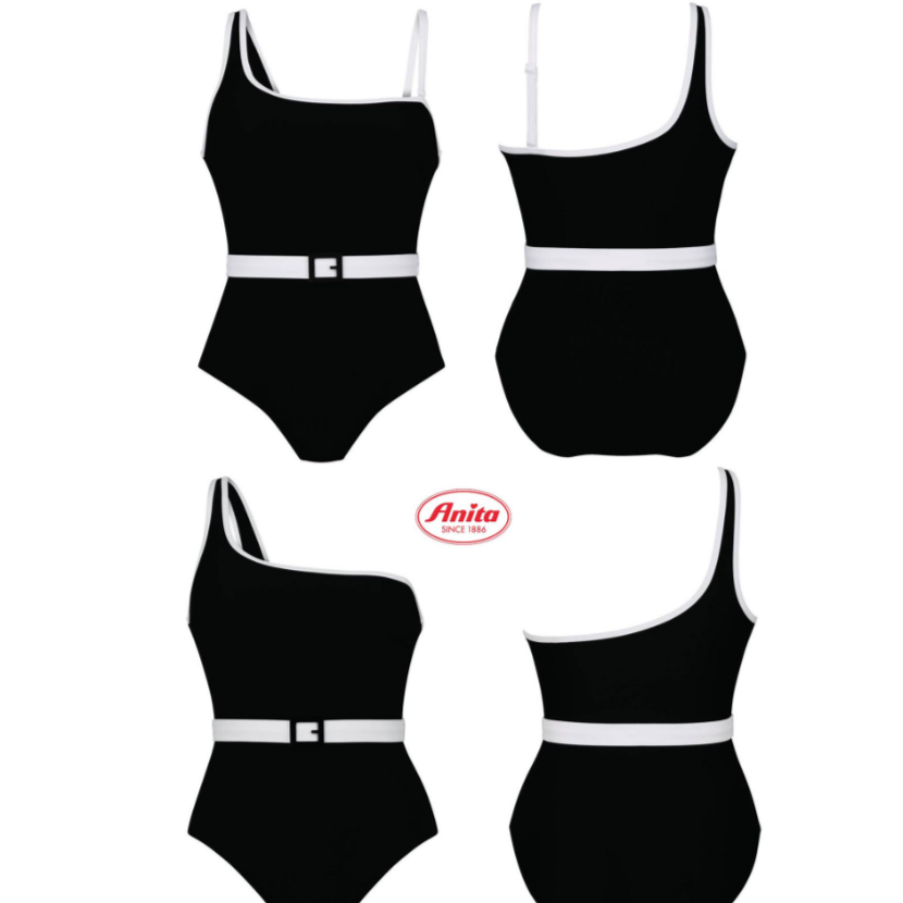 Anita's Noelia One Shoulder One Piece Swimsuit (7215) is a posh swimsuit that features concealing cups and a full bust lining around front and back for a secure fit. This one piece features a stylish one-strap design with high contrast piping along the top and a contrasting waist belt.