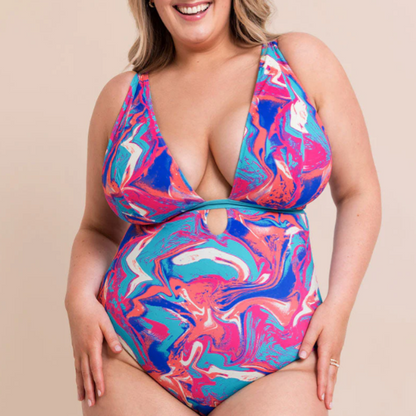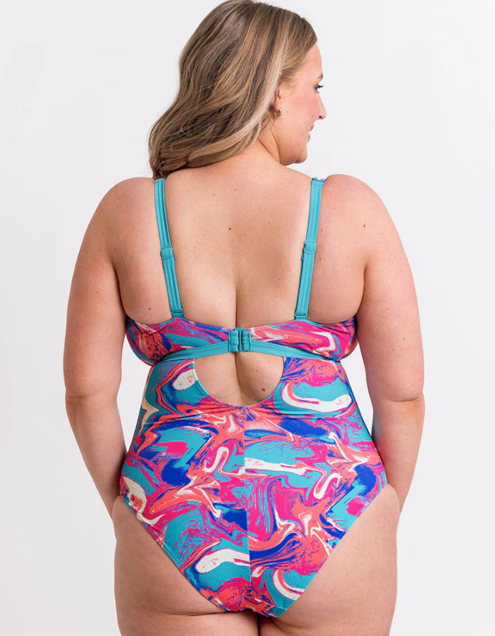 Our best-selling reversible swimsuit shape returns with the Ibiza Reversible Non-Wired Multiway Swimsuit, designed to offer both style and flexibility. Featuring a striking print mix of pink and blue swirls, this swimsuit not only offers two looks in one but has straps that can be worn in different ways, offering versatile styling options for the beach or pool. Its non-wired structure provides comfort and dual cup sizing ensures a perfect fit for a wide range of body types.