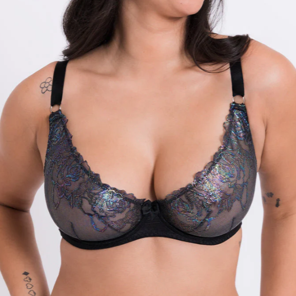 - Plunging shape with scooped away neckline