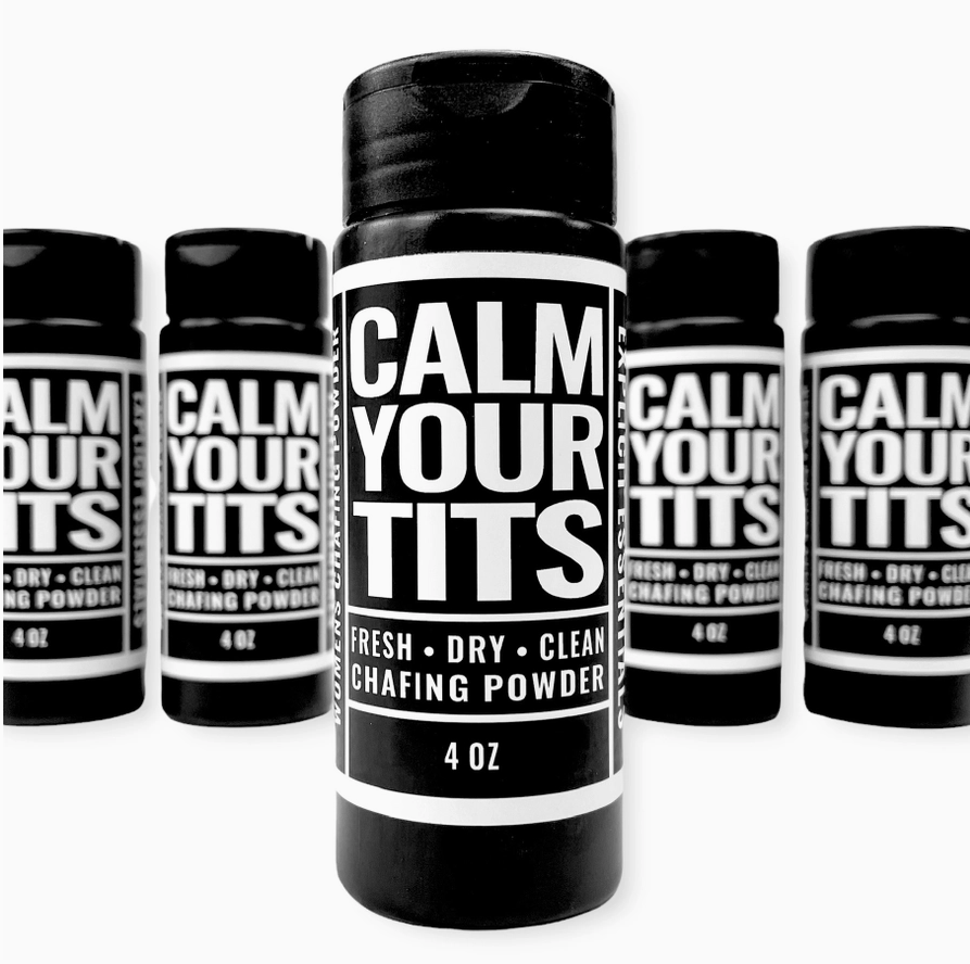 Chafing Powder is the ultimate solution for women who want to combat chafing and irritation in their sensitive areas. Made with quality ingredients, this refreshing powder provides long-lasting protection and comfort throughout the day. Its unique formula helps to reduce friction and moisture, preventing the build-up of sweat and bacteria that can lead to irritation. Whether you're an active athlete or just looking for relief from everyday chafing, Explicit Essentials has got you covered. Its compact size makes it easy to take with you wherever you go, so you can apply it anytime, anywhere. Plus, with its fun and empowering name, Calm Your Tits is not only practical, but also helps to boost your confidence and keep you feeling calm and comfortable.