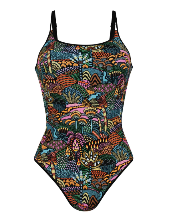 Introducing the WONDERLAND ONE PIECE - your must-have swimsuit for the pool or your next vacation! With a fun print and full coverage, this one-of-a-kind suit also features built-in support and a pocket for those who may need a mastectomy suit. Don't miss out on this unique and versatile piece!