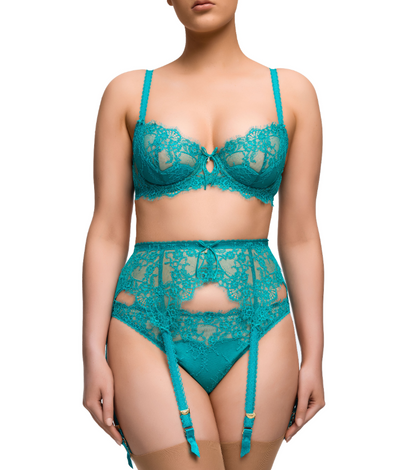 Dita loves to create beautiful, nostalgic lingerie that is also functional and wearable for everyday moments of luxury and glamour. Zsa Zsa is as glamourous as its namesake! The Zsa Zsa Bra is underwired and is made from a beautiful eyelash lace and features Dita's signature petal lift satin inserts which create subtle lift and beautiful shape. Velvet bow and ruby crystal trims.